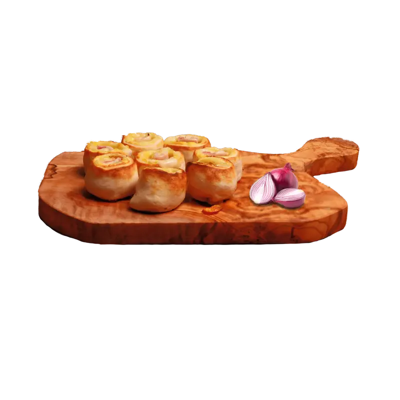 8 leckere Pizzabrötchen mit Käse und Zwiebeln